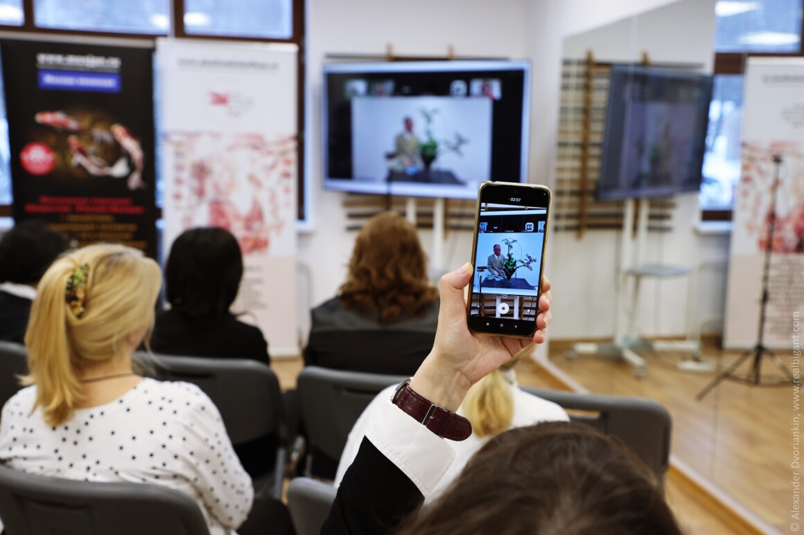 А затем наступил момент истины для наших участников. Личный разговор с мастером. Индивидуальная консультация для каждой работы. Это редкая возможность получить совет из самого сердца традиции. География события оказалась шире стен зала. Онлайн присоединились единомышленники из Европы и Ближнего Востока. Так икебана объединяет мир.