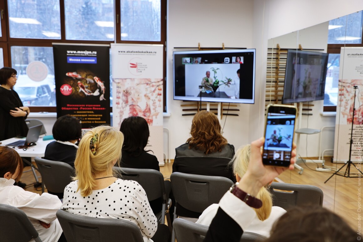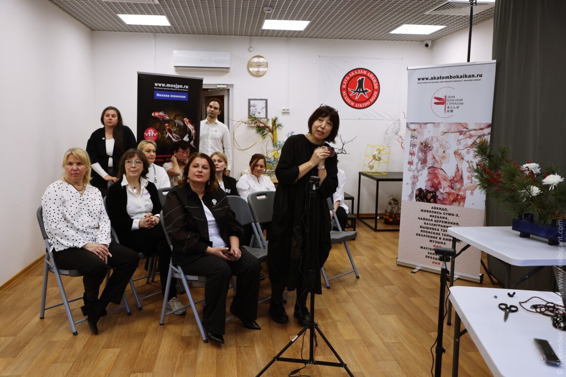 В уютном пространстве Центра «Акатомбо кайкан» собрались мастера и ученики, чтобы вместе отпраздновать грядущее 100-летие легендарной школы Sogetsu.